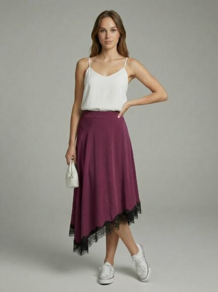 Mürdüm Eteği Dantelli Modal Asimetrik Etek