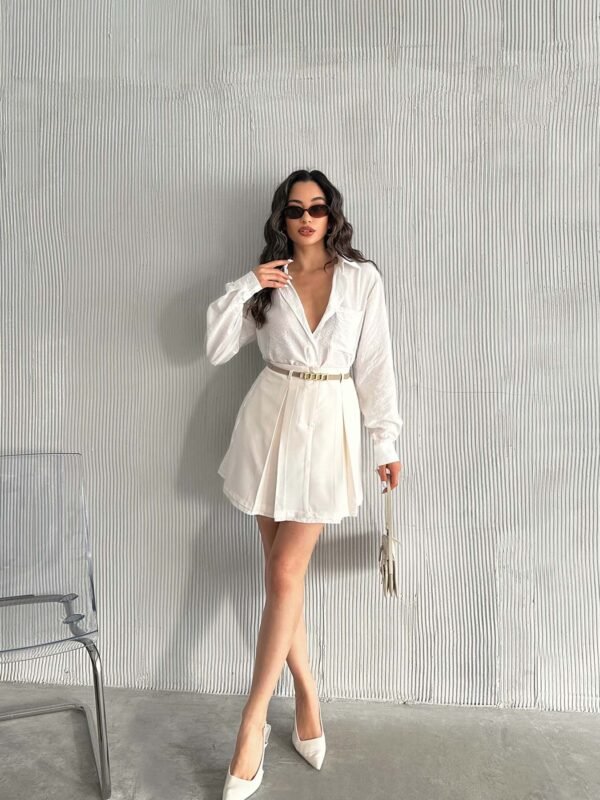Bej Eteği Piliseli Şort Etek