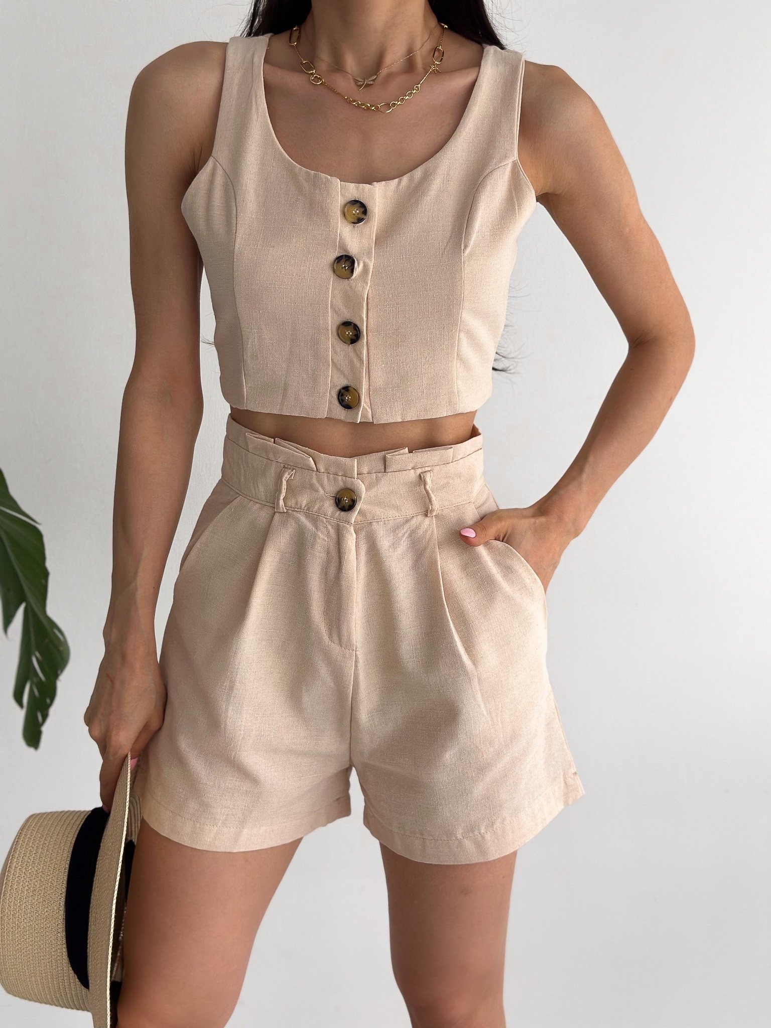 Keten Şort-Yelek Takım – Rahatlık ve Şıklığın Mükemmel Uyumu