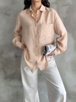 Lacivert Yan Bağlamalı Tensel Gömlek