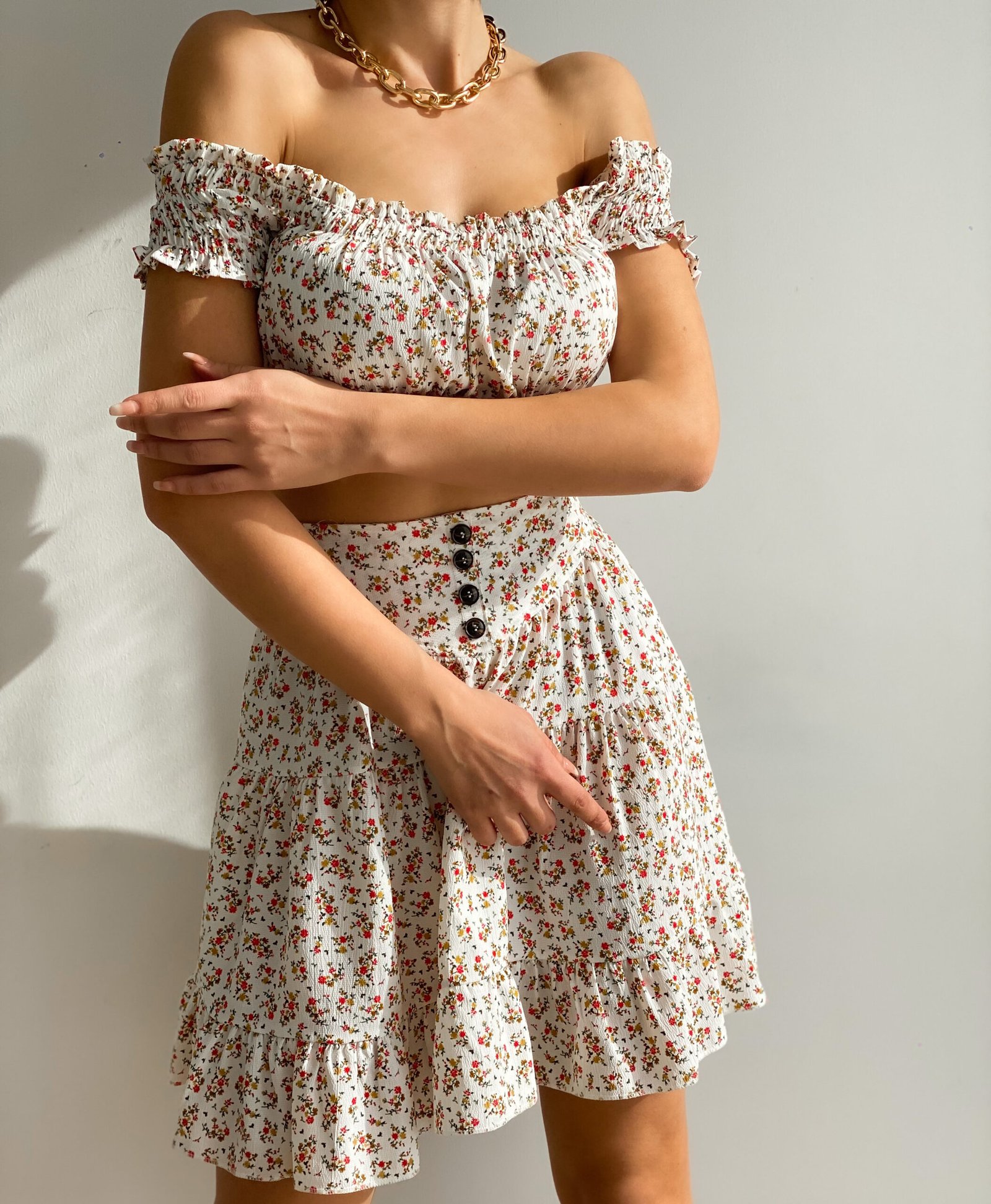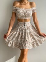 Çiçek Desenli Büstiyer ve Etek Takım – Zarif ve Romantik Bir Kombin