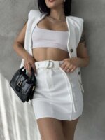 Beyaz Kaşe Kemerli Mini Etek