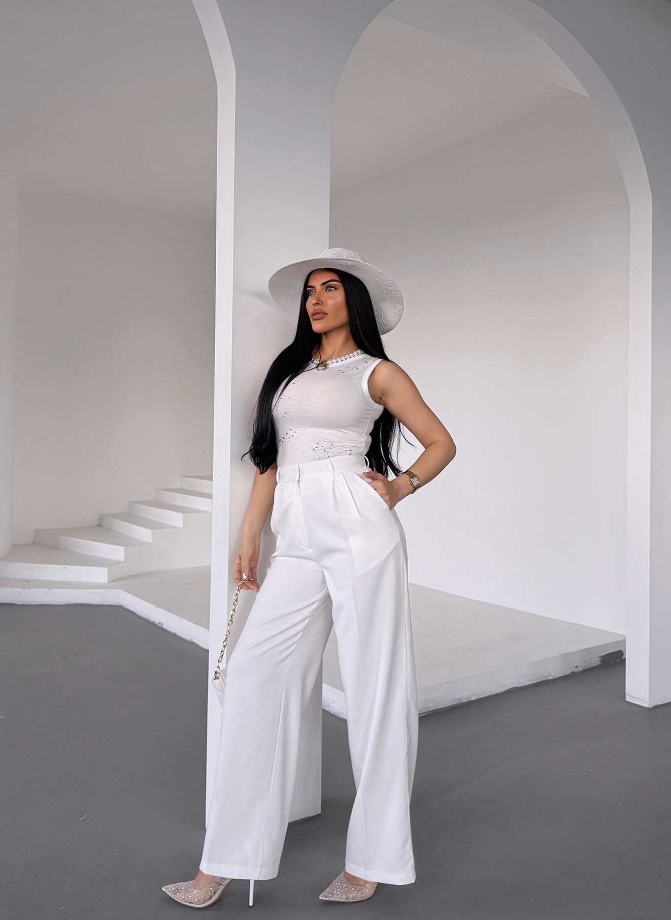 Beyaz Palazzo Atlas Pantolon
