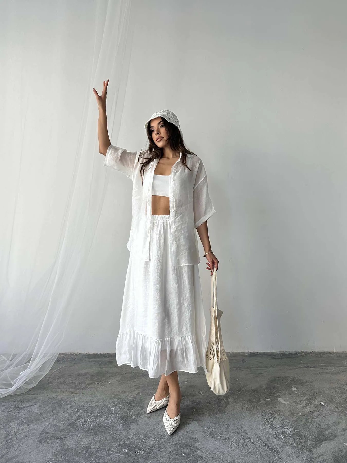 Beyaz Tensel Etekli Takım