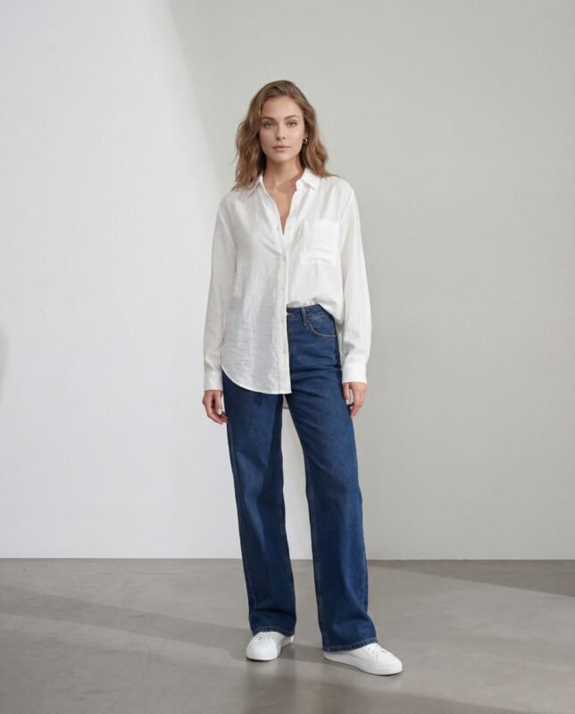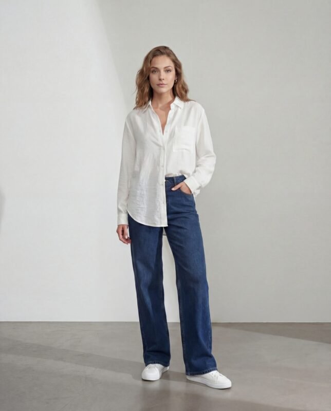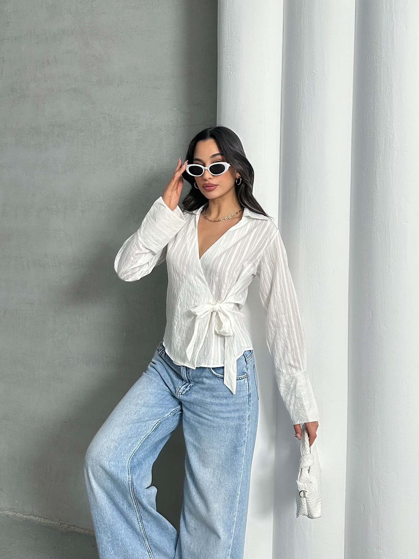 Beyaz Yan Bağlamalı Tensel Gömlek
