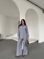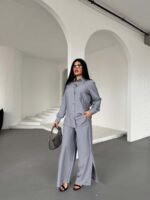 Gri Çilek Gömlek Yırtmaçlı Pantolon Takım