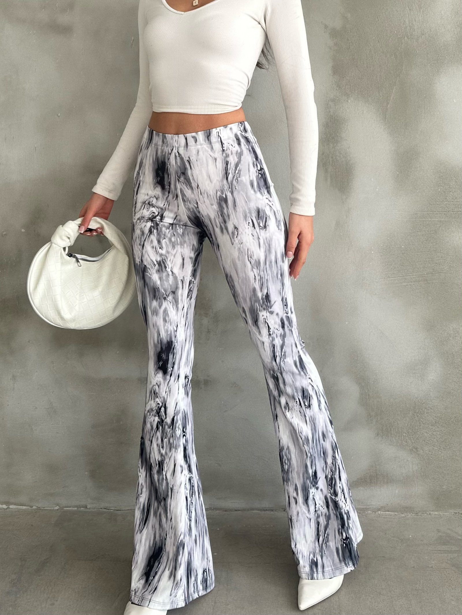 Bu İspanyol paça pantolon, geniş paça tasarımı ile zarafeti ve hareket özgürlüğünü bir araya getiriyor. Akıcı kesimi sayesinde bacak boyunu vurgularken, klasik çizgileriyle her ortamda şıklık sunar. Pantolonun modern kesimi, farklı tarzlarla kombin yapmayı kolaylaştırarak zamansız bir şıklık yaratır.