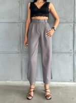 Gri Paçası Düğmeli Atlas Pantolon