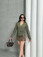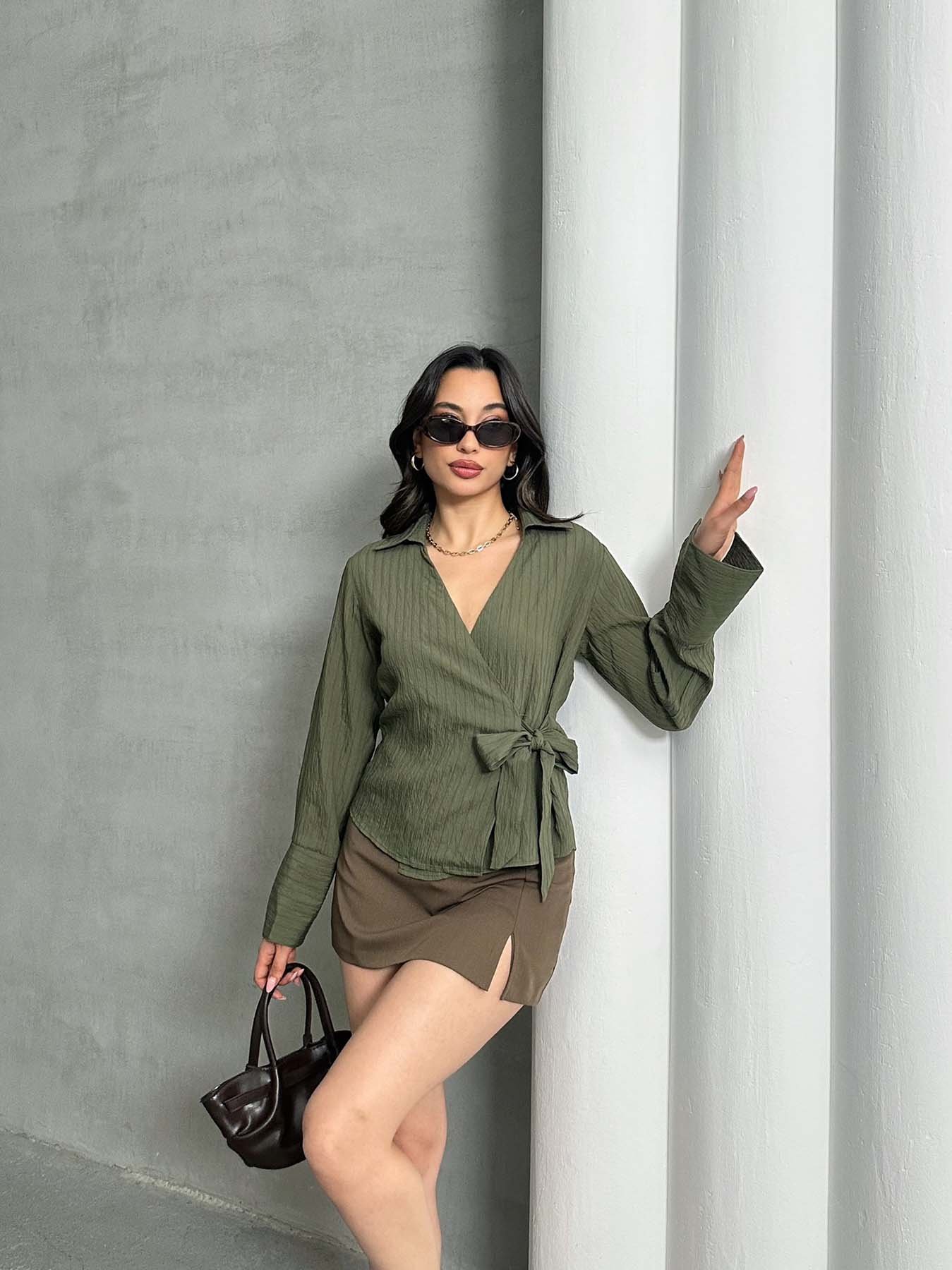 Lacivert Yan Bağlamalı Tensel Gömlek