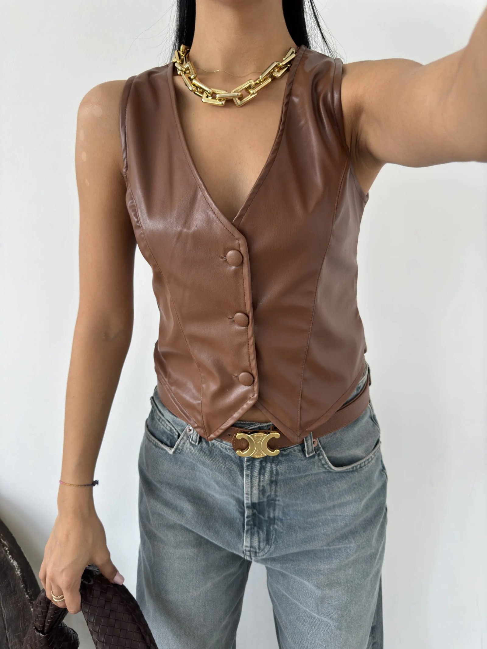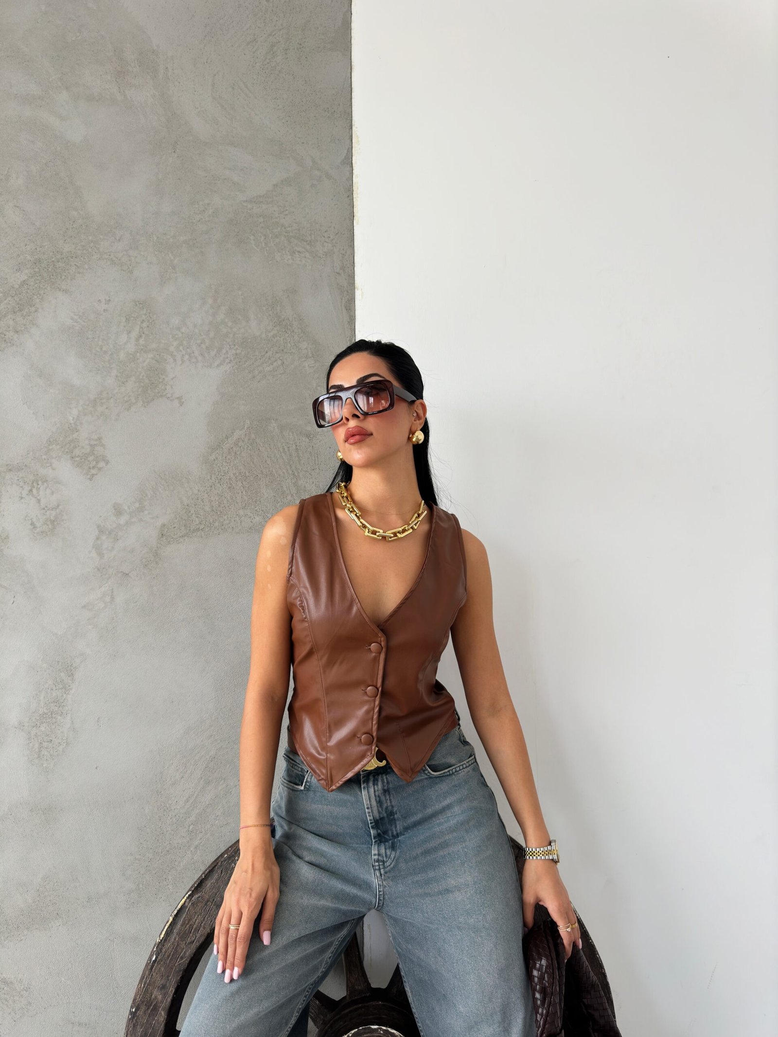 Siyah Deri Astarlı Yelek – İkonik ve Zamansız Stil