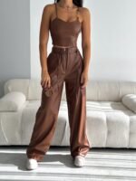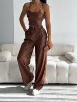 Fermuar Detaylı Deri Palazzo Pantolon – Modern ve İddialı Bir Stil