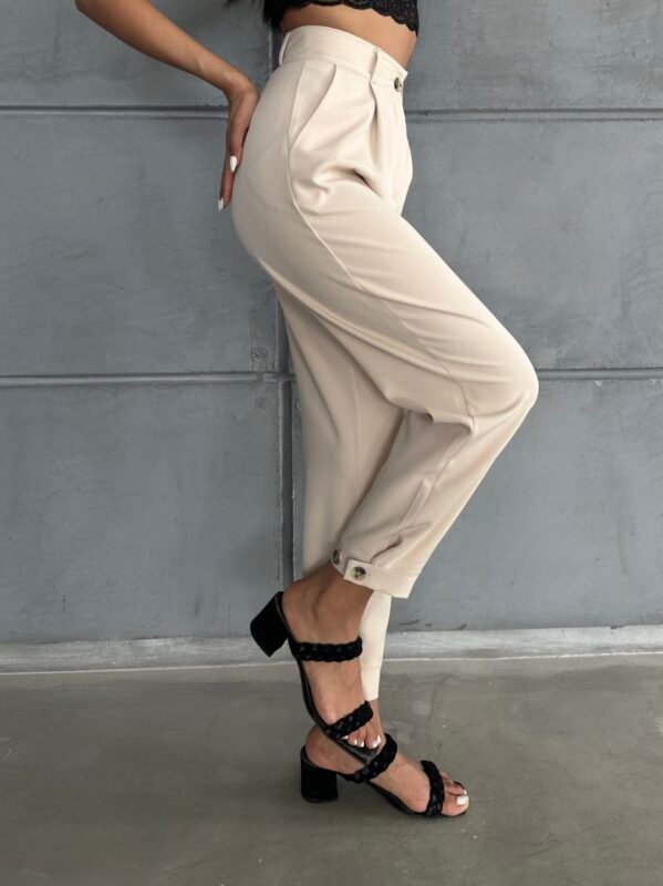 Bej Paçası Düğmeli Atlas Pantolon