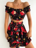 Çiçek Desenli Büstiyer ve Etek Takım – Zarif ve Romantik Bir Kombin