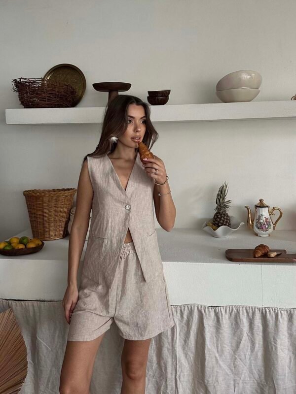 Turuncu Altın Düğmeli Yelekli Pileli Pantolon Takım