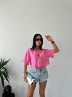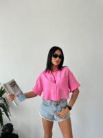 Pembe Tensel Kumaş Crop Gömlek