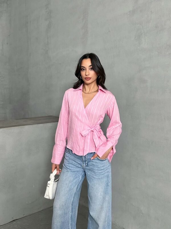 Pembe Yan Bağlamalı Tensel Gömlek