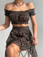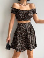 Çiçek Desenli Büstiyer ve Etek Takım – Zarif ve Romantik Bir Kombin