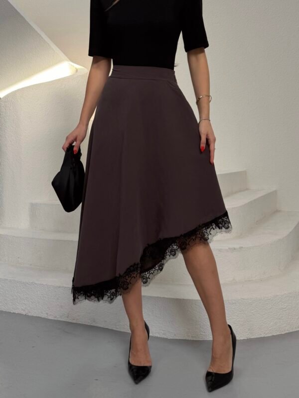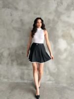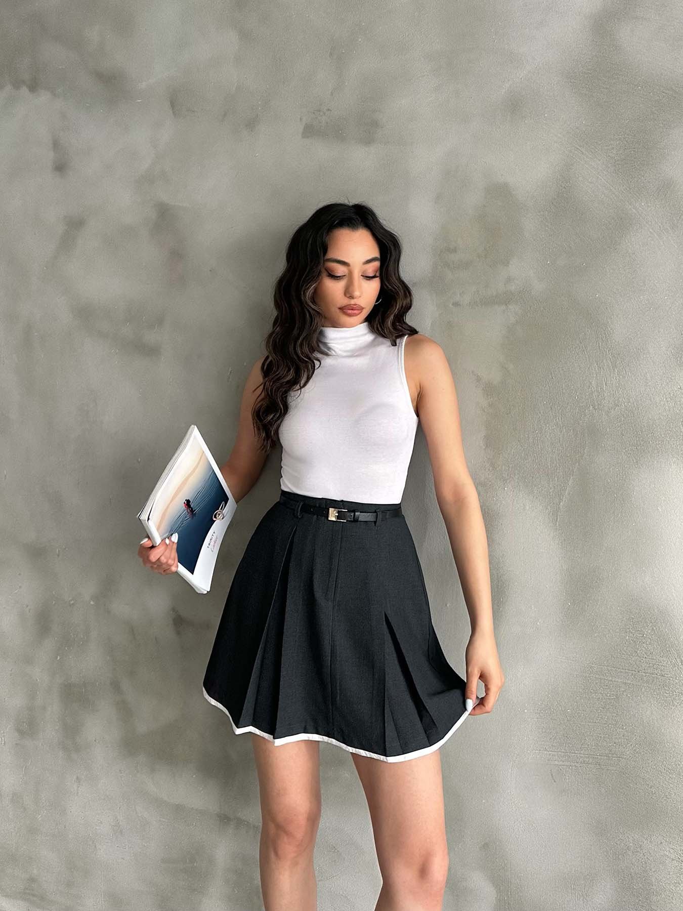 Siyah Pile Detaylı Poliviskon Etek