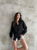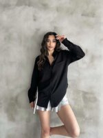 Siyah Tensel Oversize Gömlek