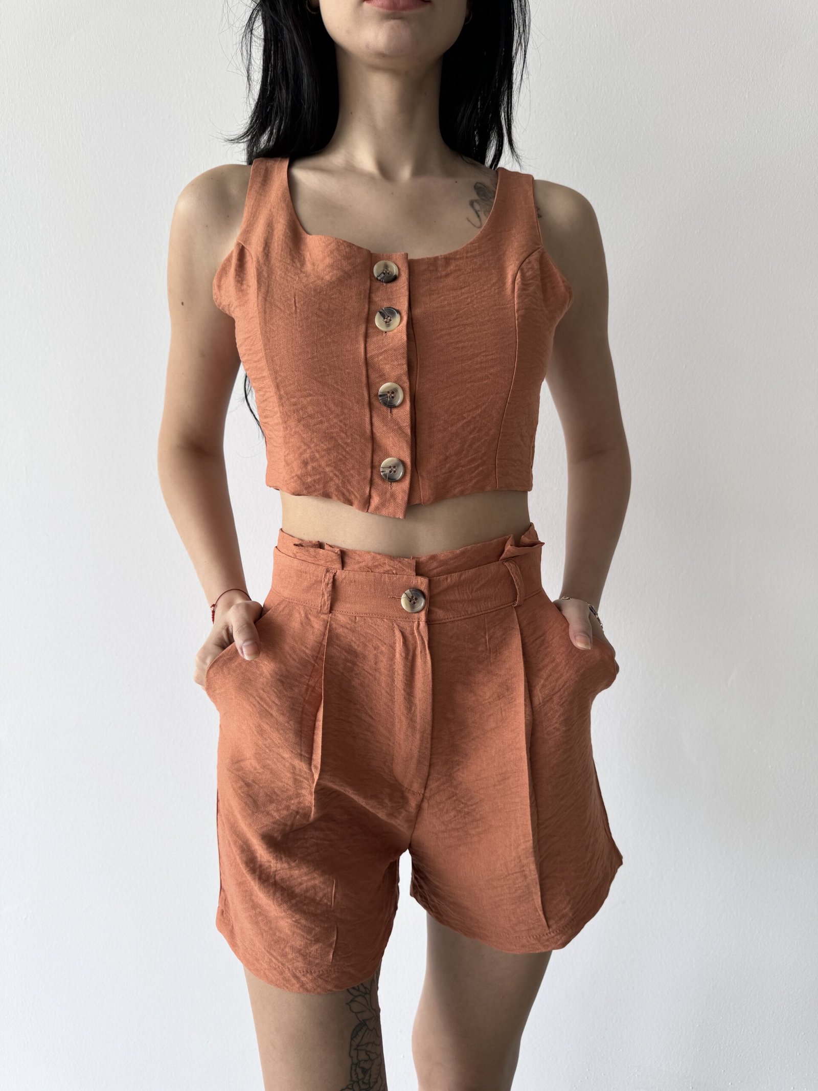 Keten Şort-Yelek Takım – Rahatlık ve Şıklığın Mükemmel Uyumu
