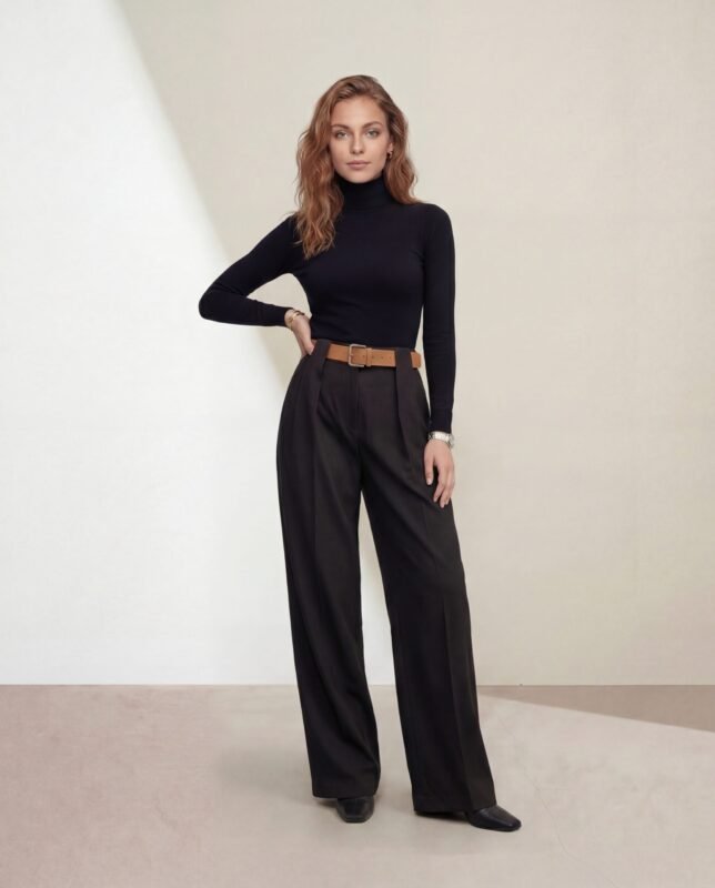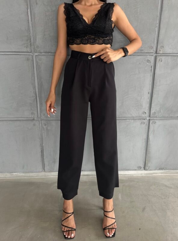 Siyah Paçası Düğmeli Atlas Pantolon – Şıklığı Tamamlayan İnce Detaylar
