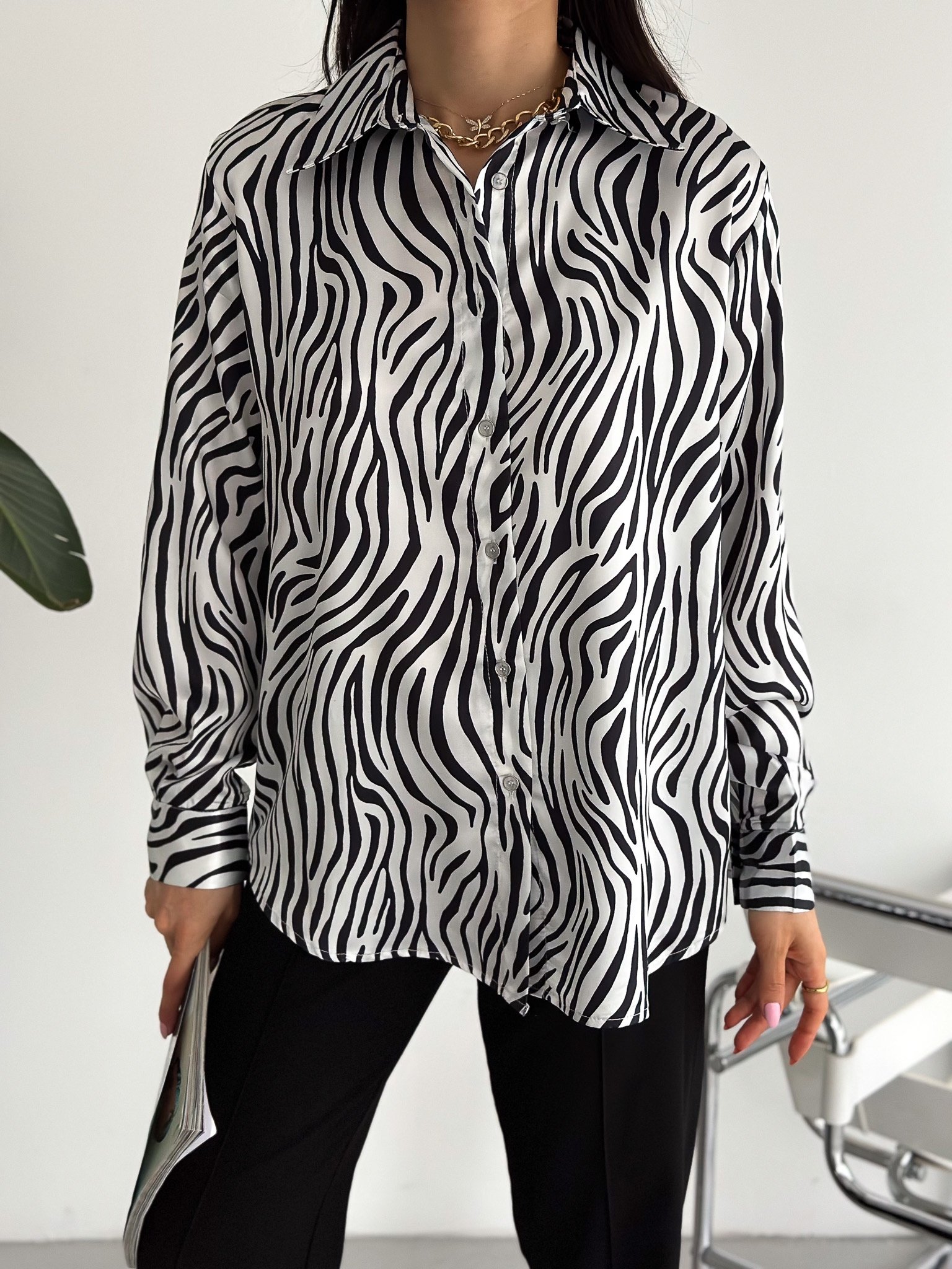 Zebra Desenli Saten Oversize Gömlek